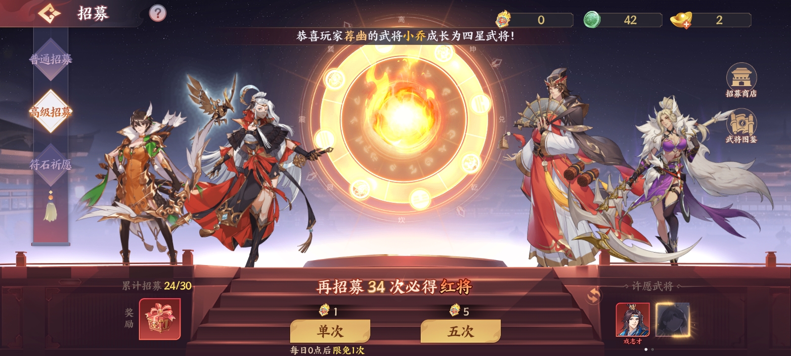 2、符石系统:武将初始单技能,镶嵌符石可增加不同武将技。
