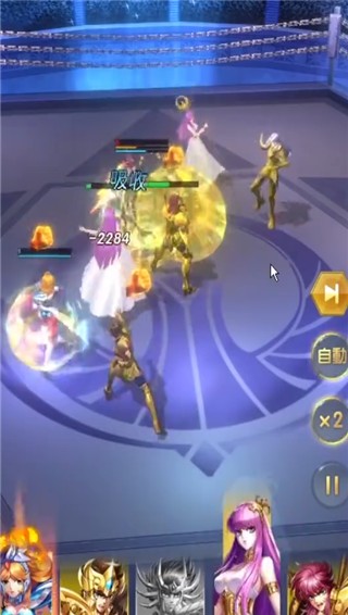 战斗开始之后慢慢的积攒能量,当有了能量之后利用天箭座的奥义来发动进攻。只要有足够的输出,第一轮就可以将雅典娜的复活打出来,复活之后运气好一些小技能可以将雅典娜给打掉,后面就只要针对其他敌人就行了。