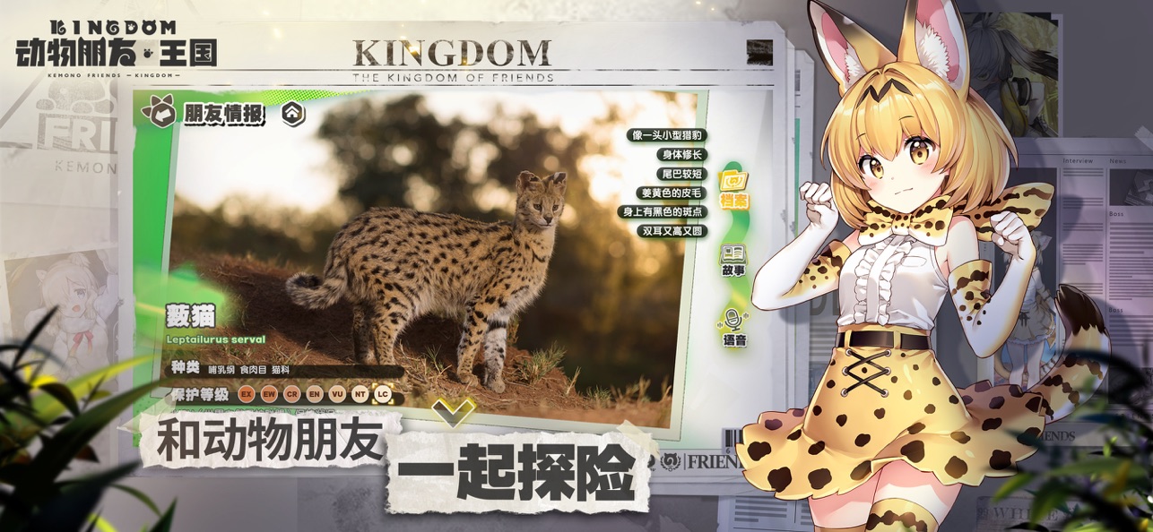 「王国」中的每位动物朋友,都以真实动物作为参考。因此,游戏中也收录了专业监修指导的动物名录,用于科普动物知识,并介绍动物保护和濒危等级等关键信息。和“朋友化”的动物们在「王国」中尽情玩耍的同时,也别忘了通过「王国」进一步了解现实世界中的她们哦。
