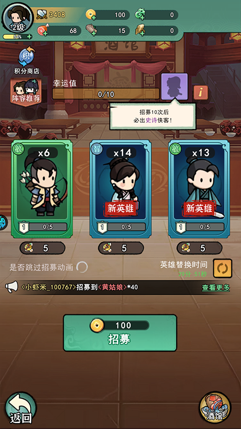 2、在游戏内获得的金币可以用来招募新角色,当然也可以在路边捡到角色不需要招募;