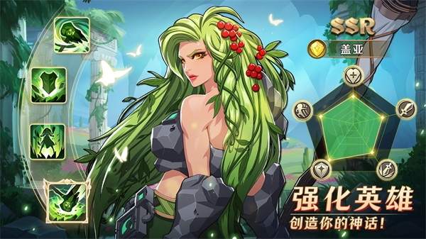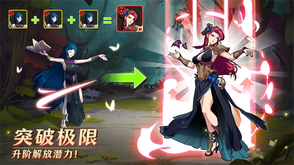 3、变化多端的英雄成长。设计精美、动人帅气的SSR级、传说级神话人物,就在弹指之间。开发专属技能,解锁独一无二的战斗神器,还能自由搭配天赋组合,让他们的威力极致发挥!