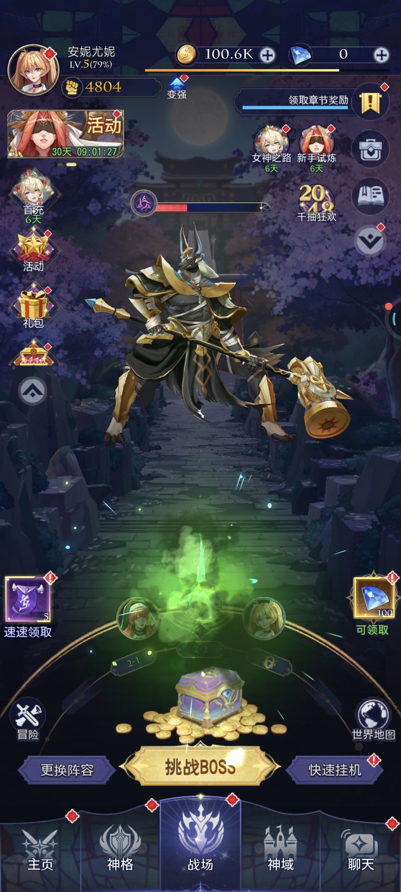 4、培养:有时候你需要提升团队力量来对抗boss,在神格系统内,选择对应的神即可进行升级,其他还包括装备、技能等,都是提升战斗力的有效途径。