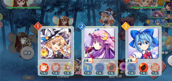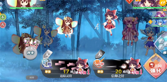 3、精致的人物画面带给你震撼的体验,你可以通过收集材料和道具提升人物的等级装备在不同的符卡上;