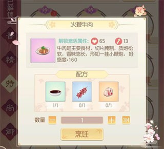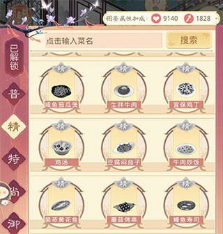 提醒一下,上面提到的普料就是普通调料的意思,而秘料就是秘制香料的意思。当然,游戏里面除了上面提到这三种菜谱之外,还有特品、精品以及普通另外三种菜谱,不过相比较之下,剩余的这三种是相对容易集齐的。
