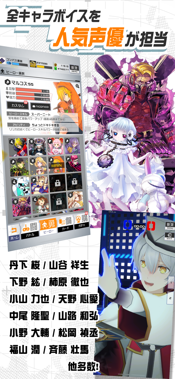Compass [战备能力分析系统],Vocalo P,活跃于Nico Nico视频中的艺术家,产生一个英雄!另外,由流行配音演员负责英雄的配音。