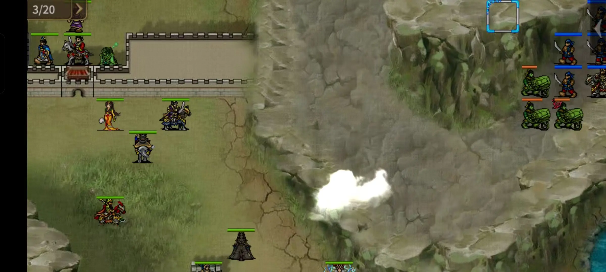 要述:这关要注意吕布的出击。保持距离即可,其他的人可以慢慢干!敌人靠近曹操军,曹操才会出击,吕布出击回合移动范围大,容易秒杀我军,吕布有先手攻击,残血刘备别攻击吕布。