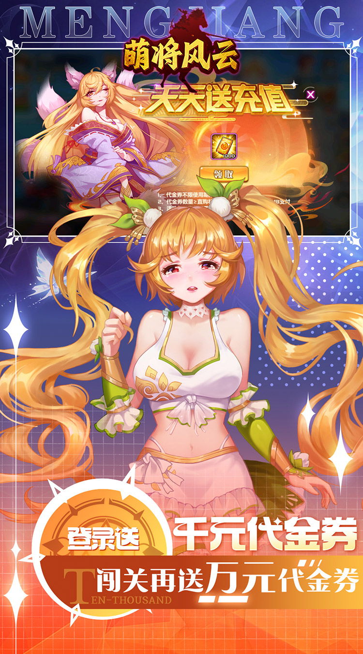 1、天天送代金:登录就送1000元代金券,闯关再送万元代金券!