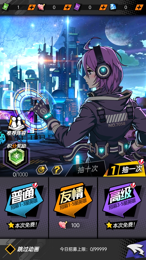 6、可以通过招募功能获取英雄,将他们编入队伍,组建属于你的超能战队一同作战。