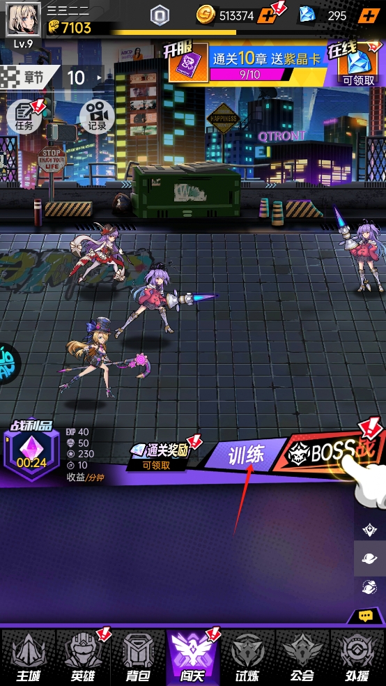 8、点击训练功能是快速提升等级的好方法,此外游戏中还有 boss 战等多种玩法,等待你去探索体验。