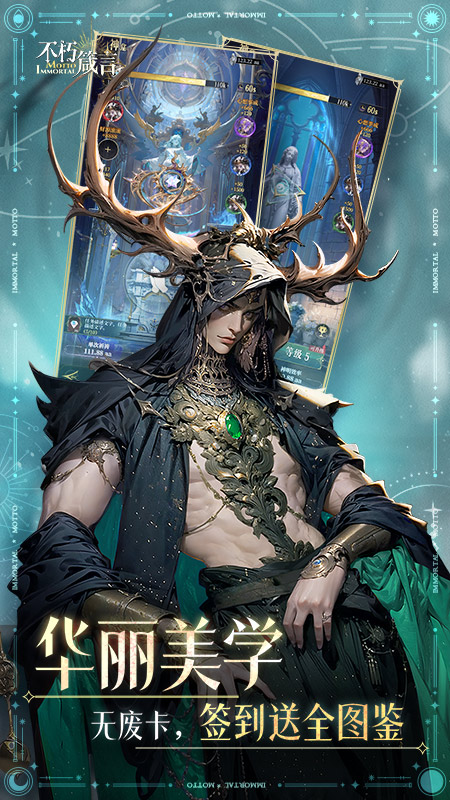 v1.0.6不朽箴言是一款好玩的放置卡牌游戏,玩家在游戏中将会成为可以聆听神谕的学者,你可以解锁塔罗的占卜结果,寻找世界的生机。游戏内有多种卡牌能够使用,每种卡牌的能力都是不一样的,你可以选择合适的卡排位搭配起来进行战斗。游戏内的画面制作的是非常精美的,玩起来很有意思,多种玩法满足你的游戏体验。