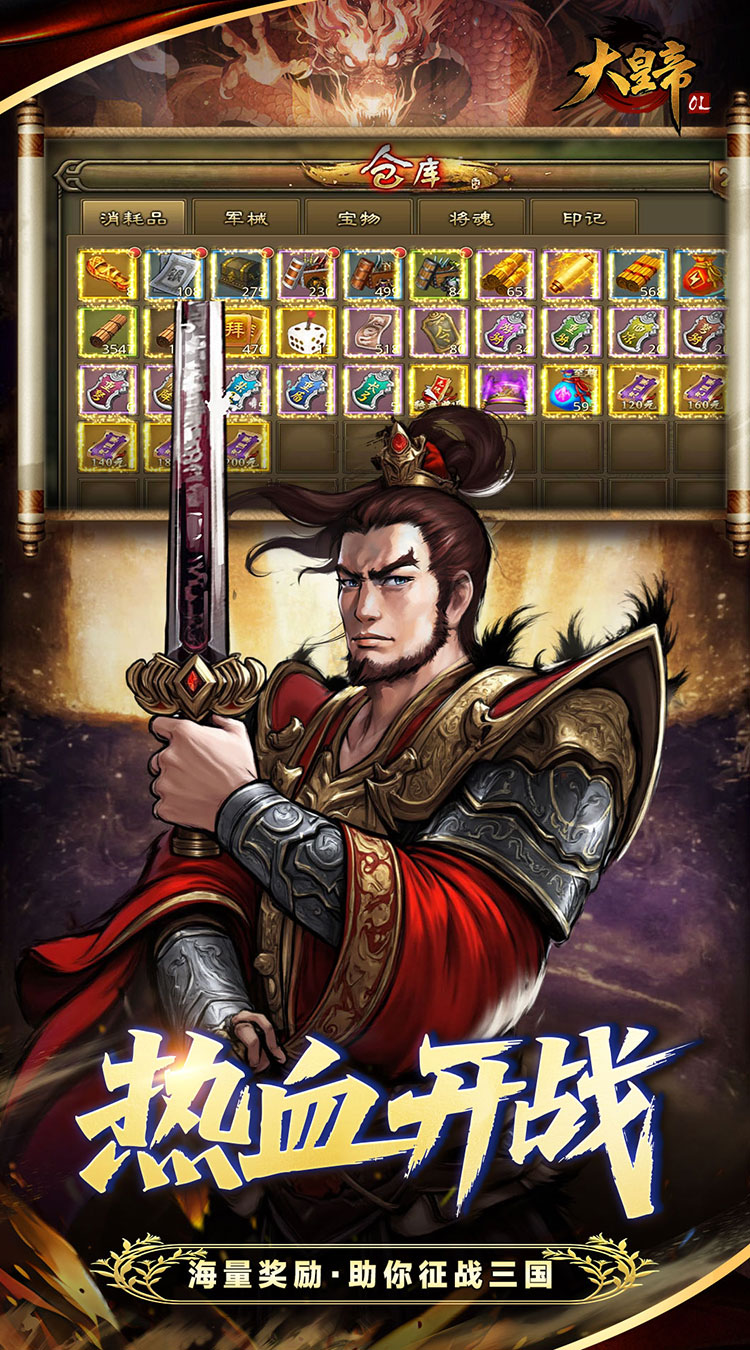 v2.24.8大皇帝0.05折版经典的故事背景,超清晰的画面风格,顶尖的动态效果,展现给玩家一场场激情澎湃的三国战役,玩家抽取各位英姿飒爽的武将,随心所欲地征战四方开疆扩土,扩展自己的城池势力,参与紧张刺激的跨服对战,与高手大神争夺全服帝王宝座。