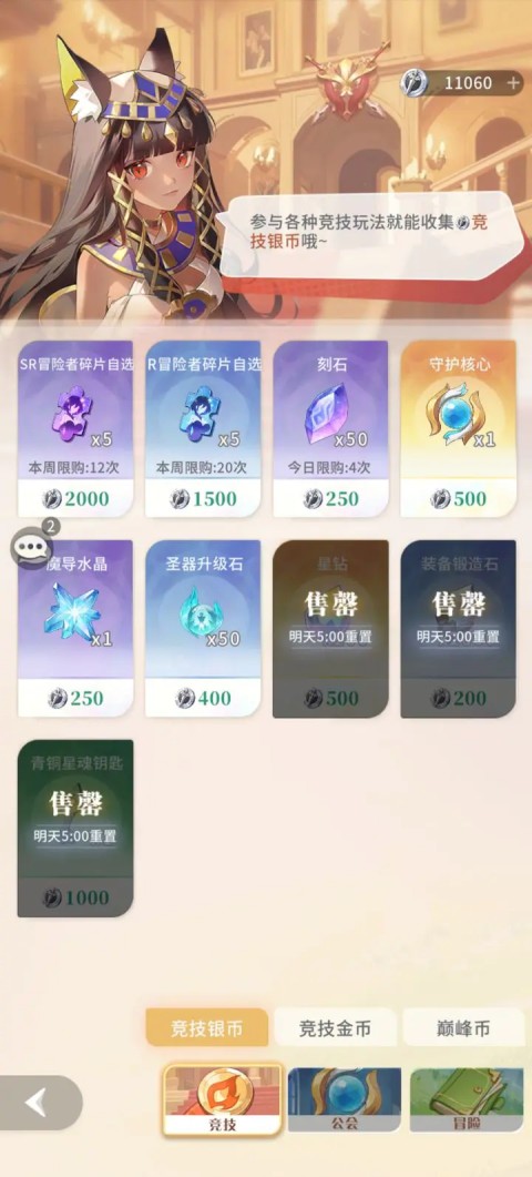 1、银币商店:在前期等级较低星魂没有开放之前,建议每日兑换刻石和装备锻造石,前期战力来源较少,装备提供的战力相当可观,可以为我们爬塔提供很大帮助;在星魂开放之后,星魂的重要性远远高于装备,所以我们把兑换物品改成星魂钥匙,一旦开出金色星魂就是血赚。另外可适当考虑兑换守护核心。