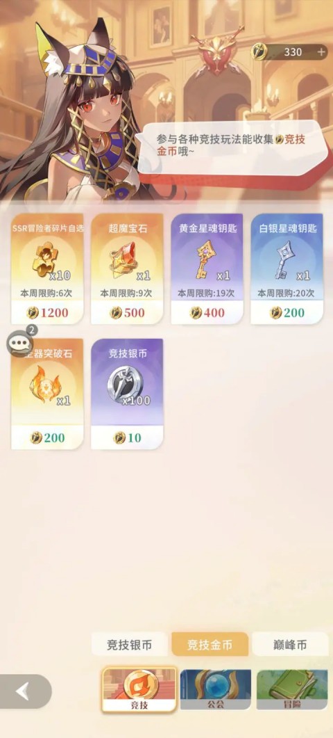 2、金币商店:ssr碎片价格上升后性价比不高,前期超魔宝石非常缺乏,建议换满,随着后续爬塔资源的提升,根据魔导水晶和超魔宝石的产出比来选择是否继续兑换;若是宝石仍旧急缺,换宝石,若是宝石溢出,换星魂钥匙。