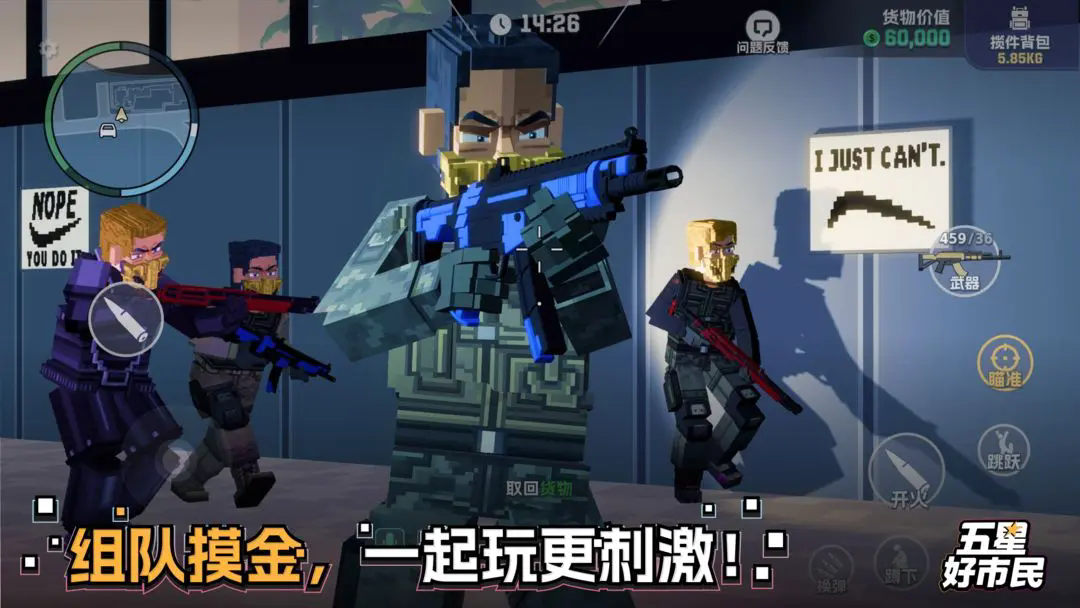五星好市民像素版是一款拥有超高自由度的开放世界冒险游戏,游戏采用3D像素的画风,这这个庞大的城市中自由冒险,与这里的NPC互动,展开全新的剧情故事,也可以收集强大的武器,破坏你看到的一切,与这里的警察战斗。这里还有超多精美服饰,自定义你的穿搭风格,丰富玩法等你发掘!