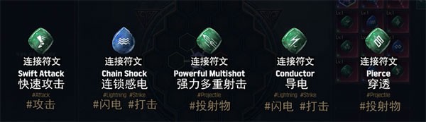 技能符文指的是游戏的一些主要技能,例如闪电、投射物、弓箭等。