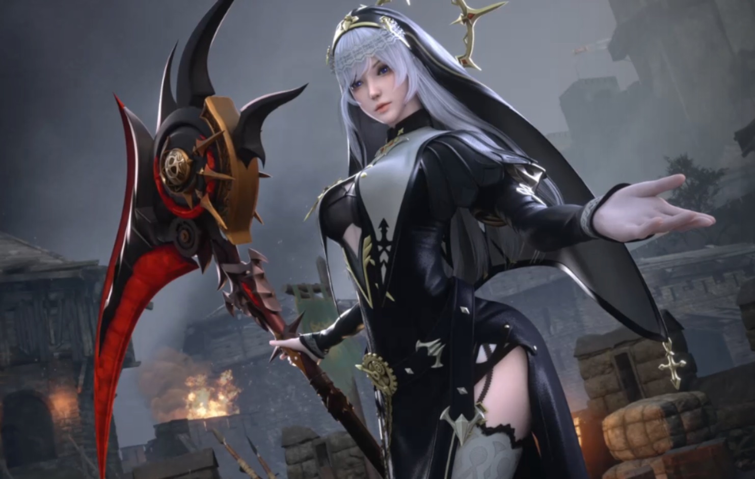白天是教堂里虔诚的修女,带领教徒们祷告、唱诗。晚上则化身双手染血的处刑人,用镰刀执行正义的审判!