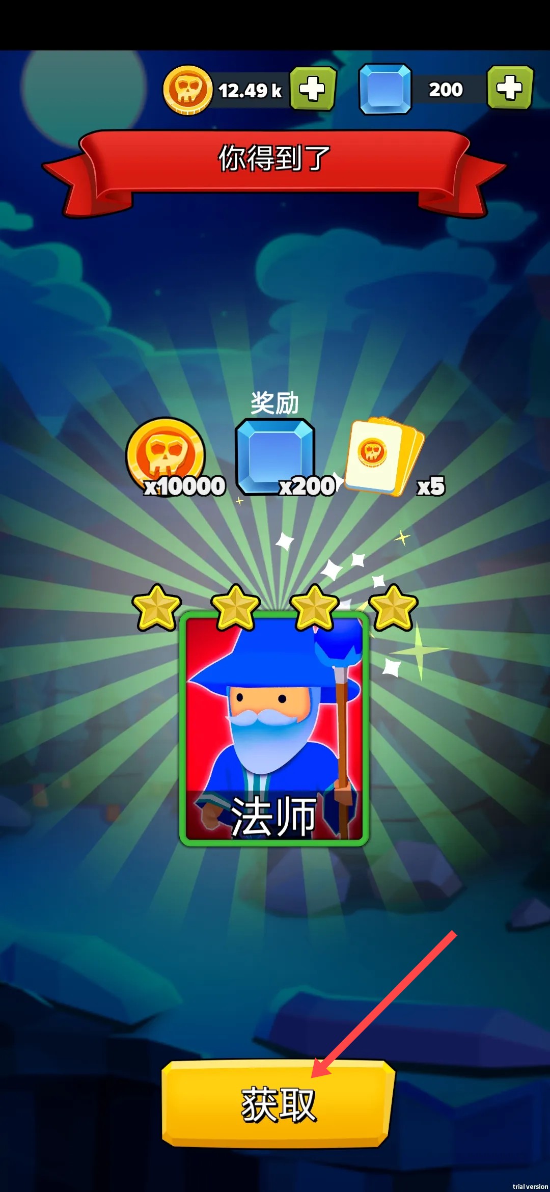 3、最后,玩家通关后,点击【获取】即可回到游戏主界面。