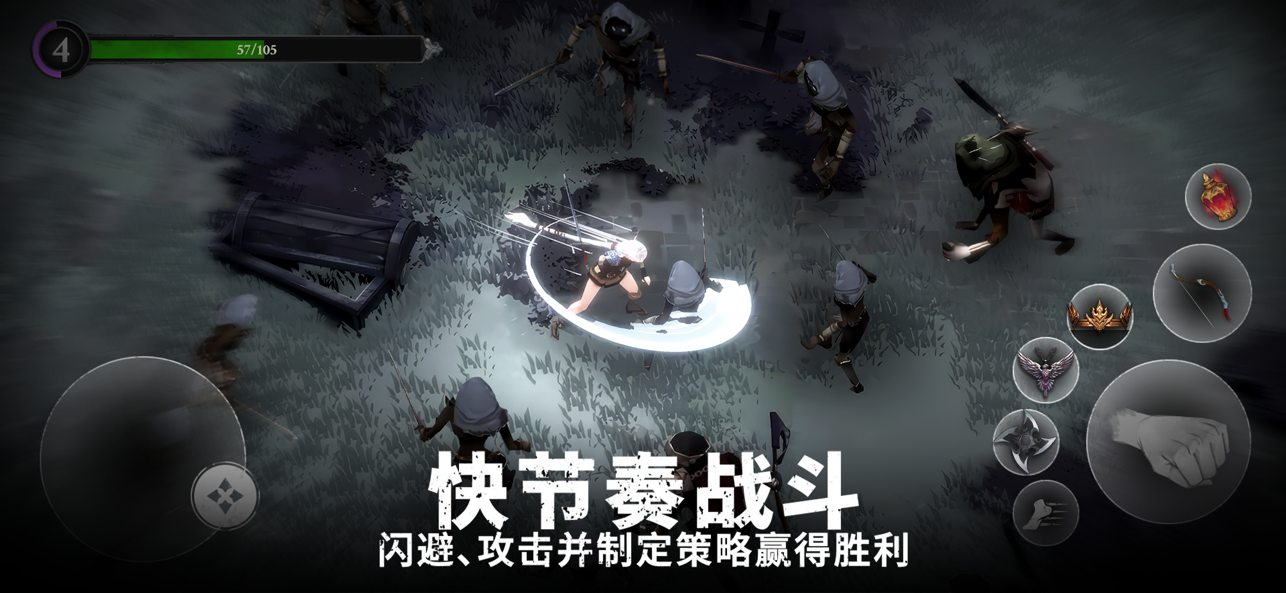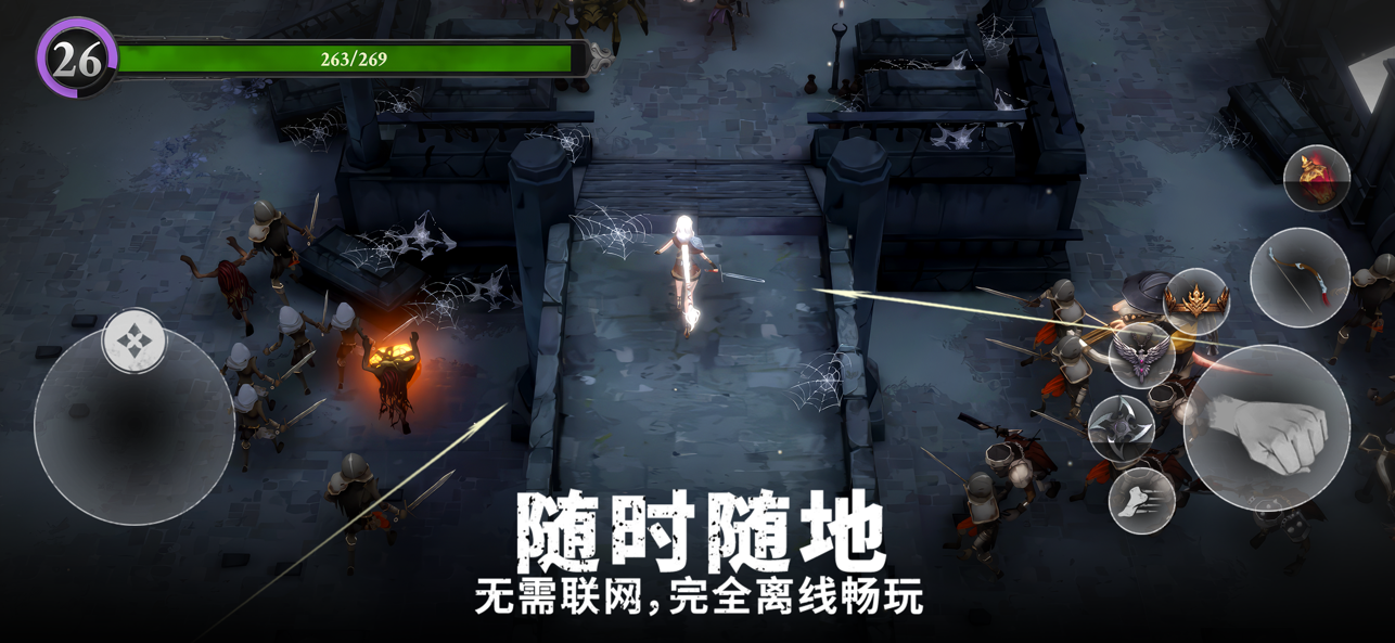 1、进入灵魂猎手地牢游戏后,左手控制角色移动;