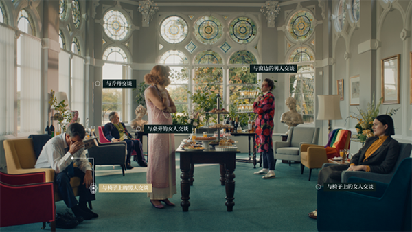 7、然后你就会来到宴会大厅你可以与他们逐个对话,根据他们口中的线索进行整合从而进一步展开行动。