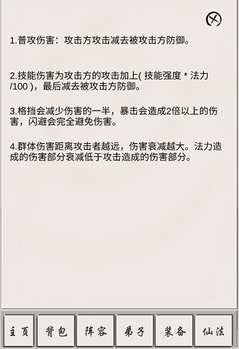 伤害=[(法力×仙法强度)÷100+攻击]-敌方防御,也就是说当仙法的强度低于100时,法力的加成不如攻击。群攻弟子就拼命压法力吧,压到0最好。