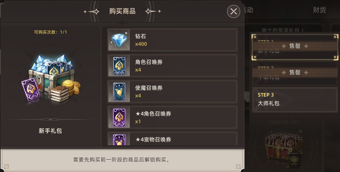 后面如果再买的话,可以把第一个章节礼包买了(我记得第一个是7倍来着),然后是