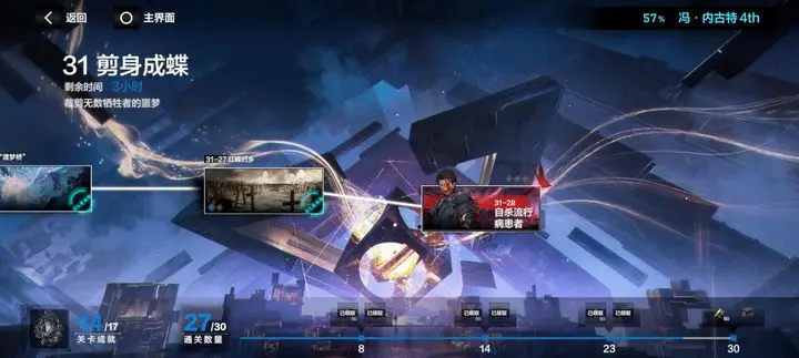 根据『普通』模式下的时间线,以章节BOSS(升格者)的行动视角所展开的剧情,使得章节故事的深度大幅的提升,感染体的形象也更为饱满。在完成普通主线2-12之后解锁,难度相比『普通』有较大提升。也是解锁后续普通主线章节的必推关卡。每章共有6个节点。