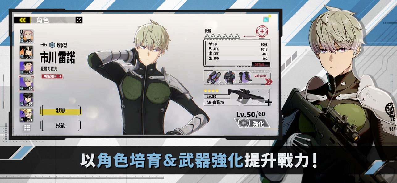v1.3.0怪兽8号是一款根据同名动漫改编而来的冒险RPG手游,游戏很好还原的漫画的画风,玩家在游戏中可以操控卡夫卡、亚白米娜、市川雷诺等特战队员一起战斗,组建4人小队对怪兽展开围剿,成为城市英雄。游戏内完美的还原了原作中的动漫角色,邀请动漫原班声优倾情打造,在画面和剧情上也非常贴合,超多的玩法模式等你来体验!