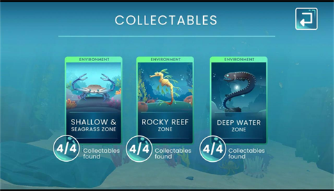 3、游戏提供了不同的环境,如:浅水区、海草区、岩礁区与深水区,每个环境都不一样,玩家可以探索面对不一样的挑战。