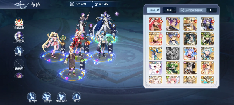 上阵精灵:苍零式、狄丝、玄武、潘多拉、阿瑞斯