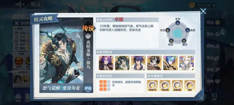 生命:A|攻击:SS|物防:B|魔防:A|速度:S