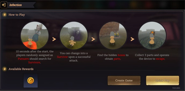 幸存者共同努力,在规定的时间内逃脱,而追捕者试图抓住幸存者或阻止他们逃跑,直到时间用完。
