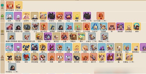 T2:佩尔,佳岚,克雷格,兰儿,凯瑟琳,加百列,八尾,奥尔卡,岚芳,康娜,未来骑士,杰洛士,泳装火龙,梅儿,瑞皮娜,瓦伦西亚,土花,赤雪,赫卡特,高里,拉碧丝二专,欧格玛二专。