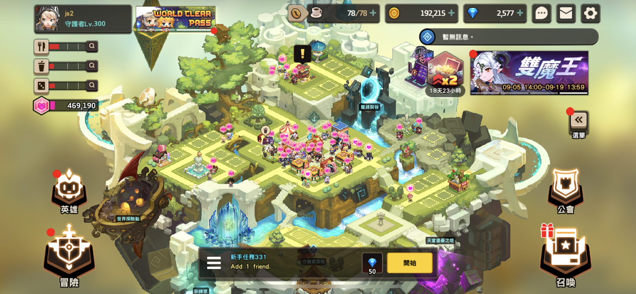 按照想要的方式,为英雄们建设独一无二的漂浮岛屿,这样旅程之外也有休闲的地方啦!别忘记领取英雄的赠礼,这是他们的小小心意噢~与好友一同创建公会,结交新朋友,炫耀你的英雄,并在公会里组成战队!
