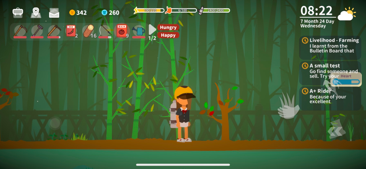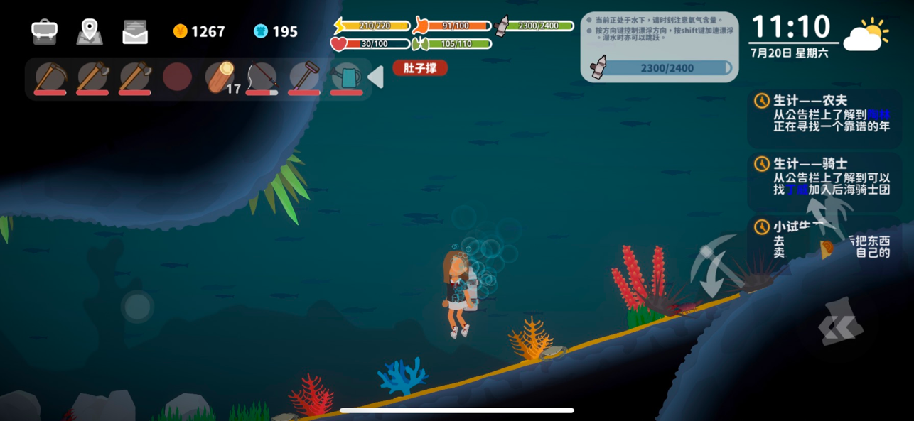 无论前一晚多少,饥饿值直接到跌到20。(饥饿值低于0不可使用工具,即选择种田线需注意饥饿值,其他尚未尝试)