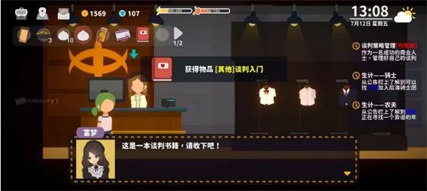 2、需注意,书屋里谈判入门(110r),在第二天选择销售工作后会在后续任务中获得,因此选择此工作者无需额外购买。