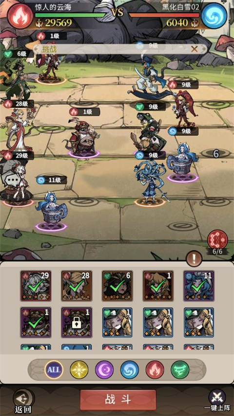 2、策略深度与休闲放置完美结合,六种阵型选择与属性克制安排,兼顾策略性与轻松养成。