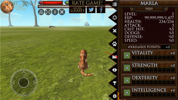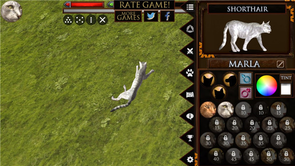终极猫模拟器是一款猫咪模拟生存类游戏,玩家在游戏中将扮演一只可爱的猫咪,需要通过对其他小型动物进行捕猎的方式来让自己生存下去。游戏拥有超大的地图场景,玩家可以在游戏中的各个场景中进行冒险和探索来真实体验作为一直小猫该如何生存。而且玩家在探索的过程中还需要小心其他比自己体型更大的动物的攻击,为玩家带来非常出色的游戏体验。