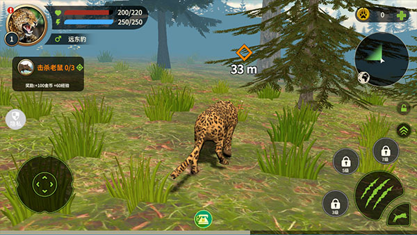 v1.0.0模拟猎豹是一款深受玩家喜爱的动物模拟生存类游戏,玩家在游戏中将扮演地表移动速度最快的生物——猎豹,需要通过捕猎其他生物、寻找水源等方式来让自己在残酷的自然界中生存下去。游戏采用了3D引擎对地图中的场景进行打造,对猎豹的习性、动作也进行了出色的还原,玩家在游戏的过程也可以真实了解猎豹的生存方式。