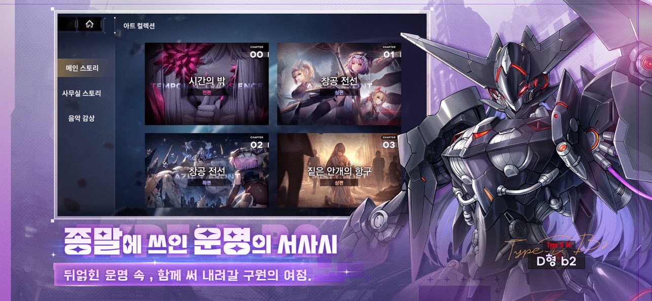 v1.0.9苍雾残响韩服是一款画风十分精良的二次元角色扮演类手游,故事的背景设定在近未来的地球,一种可怕的硅基生命体——“原罪”突然在地球上出现,地球原本的武器对它们毫无作用,就在人力一筹莫展之际,一位位被改造的少女们加入了战场,她们有着可以操控特殊机甲的能力,使用这份力量,成功遏制住了“原罪”们的进攻。而玩家则将扮演这群少女的领航员,与她们一起抵抗原罪,守护世界。