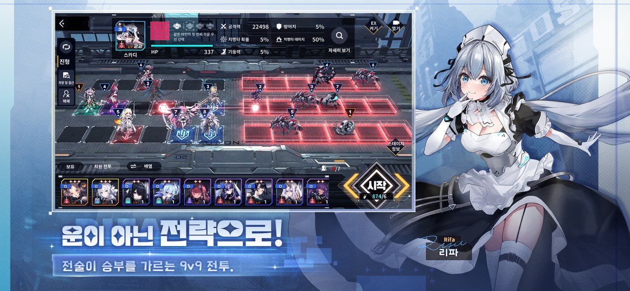 一般来说,玩家需要将我方9名角色放置在3×6的格子中,并给每位角色安排行动顺序,使我方输出角色尽可能的优先攻击敌方的高威胁角色,并让我方坦克尽可能的抗下敌方角色的伤害,从而实现战斗胜利。