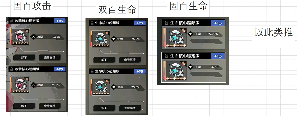 得益于固定核心数值与百分比核心数值不在一个乘区,因此大部分情况下,都是一个百分比核心加一个固定核心是最优。