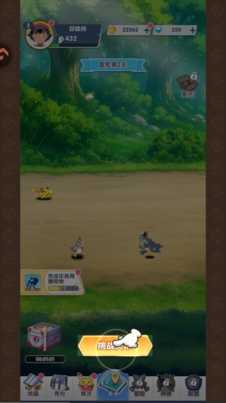 1、进入游戏后,系统会直接赠送一只五星皮卡丘,作为前期主力已经非常够用了,新手推进关卡完全无压力。