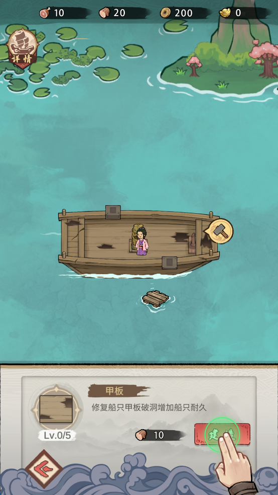 1、首先通过捡取材料,建造自己的船只。