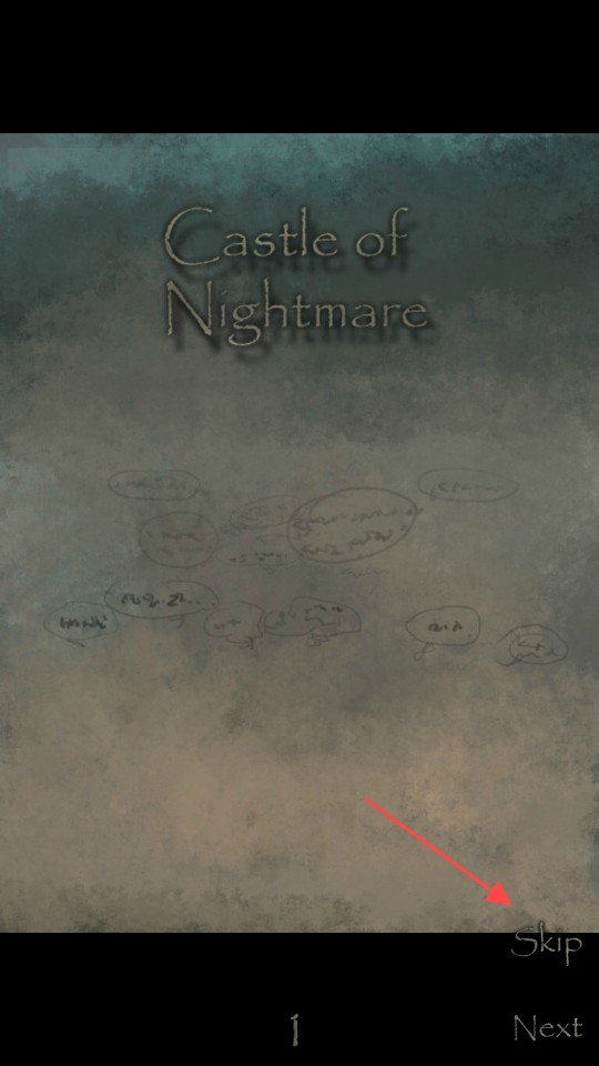 1、进入游戏出现“CastleofNightmare”界面时,点击右下角【Skip】按钮,跳过开场剧情,快速进入游戏。