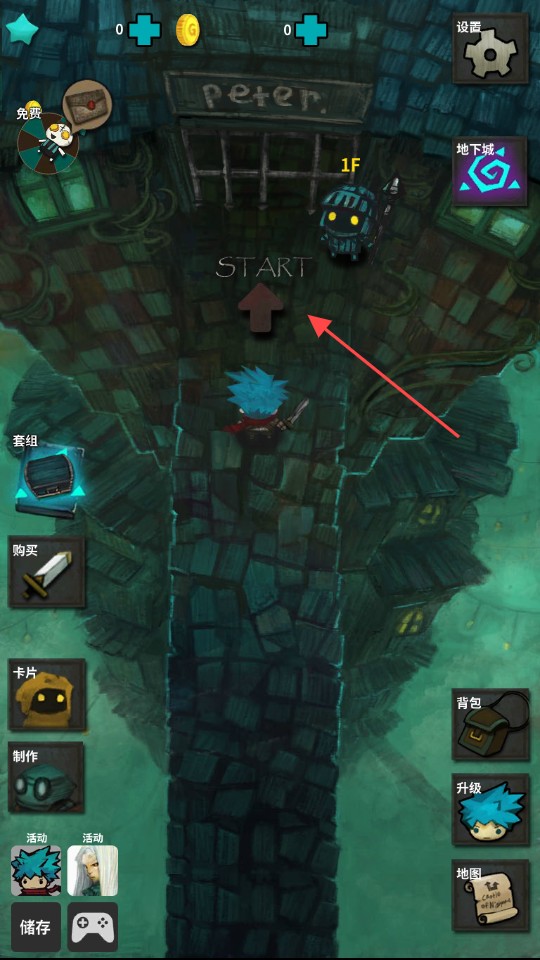 1、恶梦之城的玩法其实就是一款标准的放置类手游,初期并没有太多的教学内容,点触画面上的start就可以开始地宫冒险了。