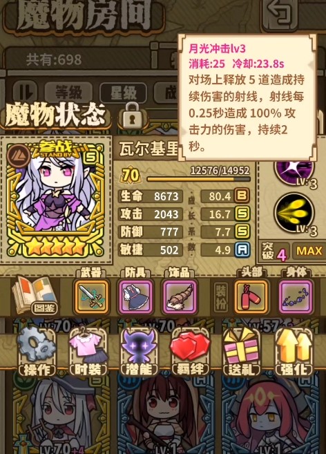 3、神装育成玩法,各种精美神器服饰装扮你的魔物娘。