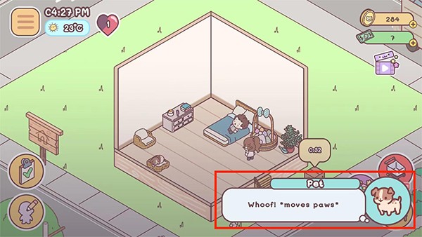 4、返回袖珍爱情游戏界面,点击宠物,可看到右下角出现宠物的对话框,以上就是袖珍爱情和宠物打招呼的方法了。