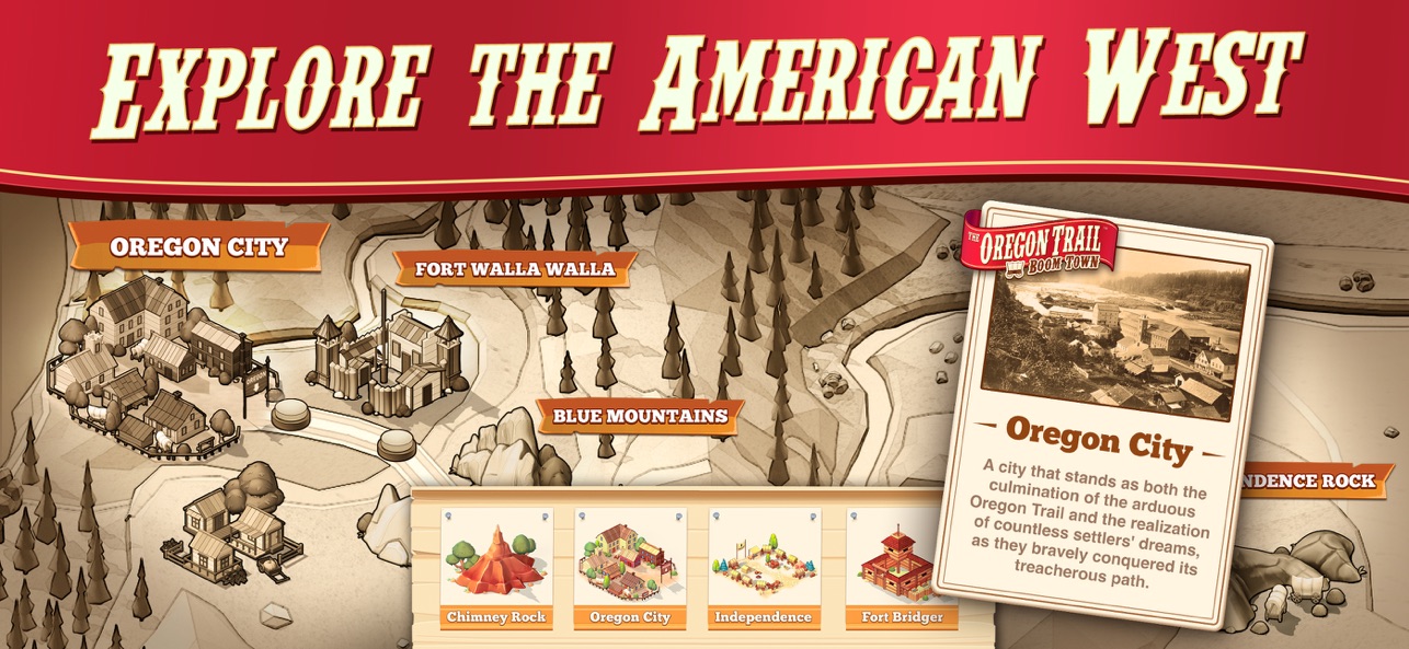 v1.51.401俄勒冈之旅,英文名也叫The Oregon Trail,是一款深受玩家喜爱的模拟经营手游。该游戏由steam移植而来,游戏展现了150年前的美国西部风情,让你亲身体验西部牛仔的自由生活。游戏玩法围绕建造为主,进入游戏,玩家需要带领开拓者们建造一个安全舒适繁荣的小镇。游戏加入了模拟、建造、收集等多种元素,玩法非常自由,玩家可以根据自己的喜好建造一座你喜欢的小镇。