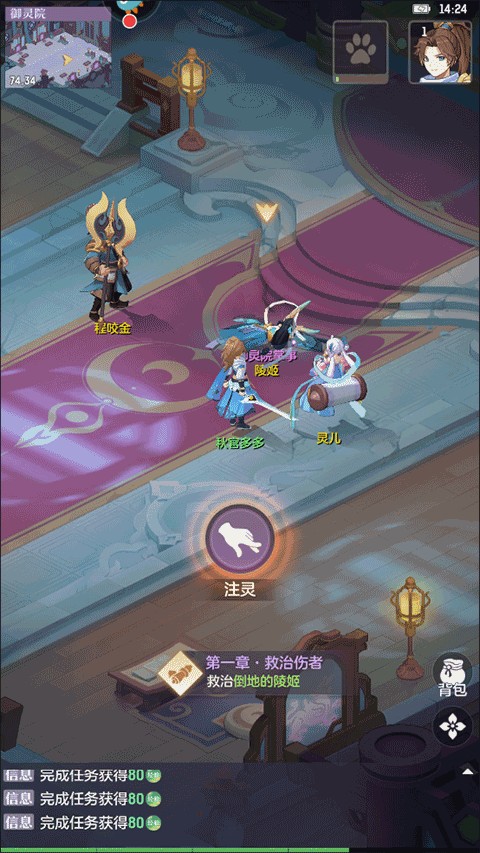 2、在这里玩家认识了第一位NPC--灵儿,这是前期一位重要的任务发布、新手引导的人物;