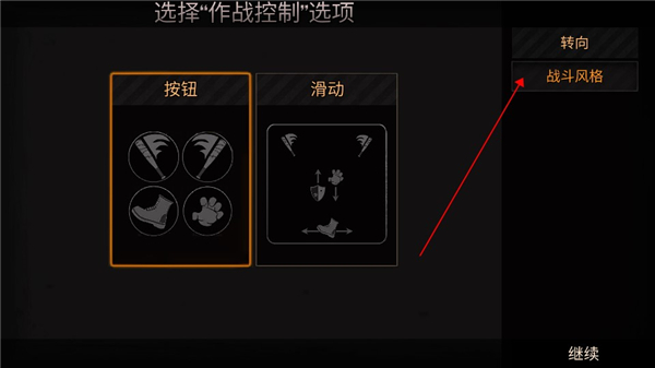 2、接下来玩家需要选择作战控制,玩家根据自己的游戏习惯来进行选择即可,小编这里选择按钮。